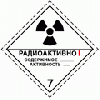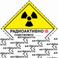 Категория III - Желтая Символ (трилистник): черный; фон: верхняя половина - желтая с белой каймой; нижняя - белая Текст (обязательный): черный в нижней половине знака: \"РАДИОАКТИВНО\" \"СОДЕРЖИМОЕ...\" \"АКТИВНОСТЬ...\" В черном прямоугольнике: \"ТРАНСПОРТНЫЙ ИНДЕКС\" За словом \"РАДИОАКТИВНО\" должны следовать три красные вертикальные полосы; цифра \"7\" в нижнем углу
