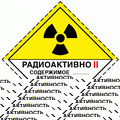 Категория II - Желтая Символ (трилистник): черный; фон: верхняя половина - желтая с белой каймой; нижняя - белая Текст (обязательный): черный в нижней половине знака: \"РАДИОАКТИВНО\" \"СОДЕРЖИМОЕ...\" \"АКТИВНОСТЬ...\" В черном прямоугольнике: \"ТРАНСПОРТНЫЙ ИНДЕКС\" За словом \"РАДИОАКТИВНО\" должны следовать две красные вертикальные полосы; цифра \"7\" в нижнем углу