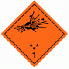Символ (взрывающаяся бомба): черный; фон: оранжевый; цифра \"1\" в нижнем углу